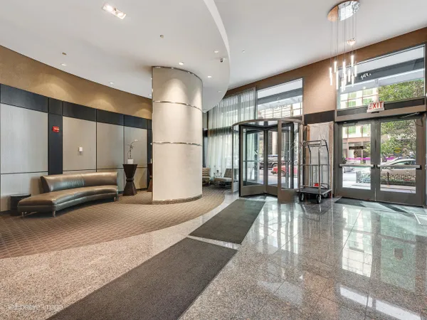 Sunny east-facing, high-floor 800 sq ft one-bedroom in the heart of River North with stunning skyline views. Floor-to-ceiling windows fill the home with natural light and showcase beautiful downtown Chicago views. Unit features hardwood floors throughout, an extra-large walk-in closet, washer and dryer in the unit, and an efficient, open layout. Assessments include heat, air conditioning, water, gas, cable, internet, and full amenity access. Full-service building amenities include a 24-hour door staff, on-site dry cleaner, expansive fitness center, renovated rooftop sundeck with gas grills and panoramic city views, rooftop party room, and professional on-site management and maintenance. Phenomenal location within walking distance to the lake, dining, shopping, Whole Foods, nightlife, and public transportation. Premium garage parking space included. Investor- and pet-friendly building. Unit is currently tenant-occupied with a lease through March 31, 2026; tenant is willing to extend the lease if the purchaser is an investor.